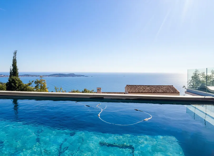 De villa is gelegen op het privédomein van de heuvel La Californie en in een afgesloten met twee woningen in een zeer rustige omgeving, met een buitengewoon adembenemend panoramisch uitzicht over de baai van Toulon tot aan de gouden eilanden.